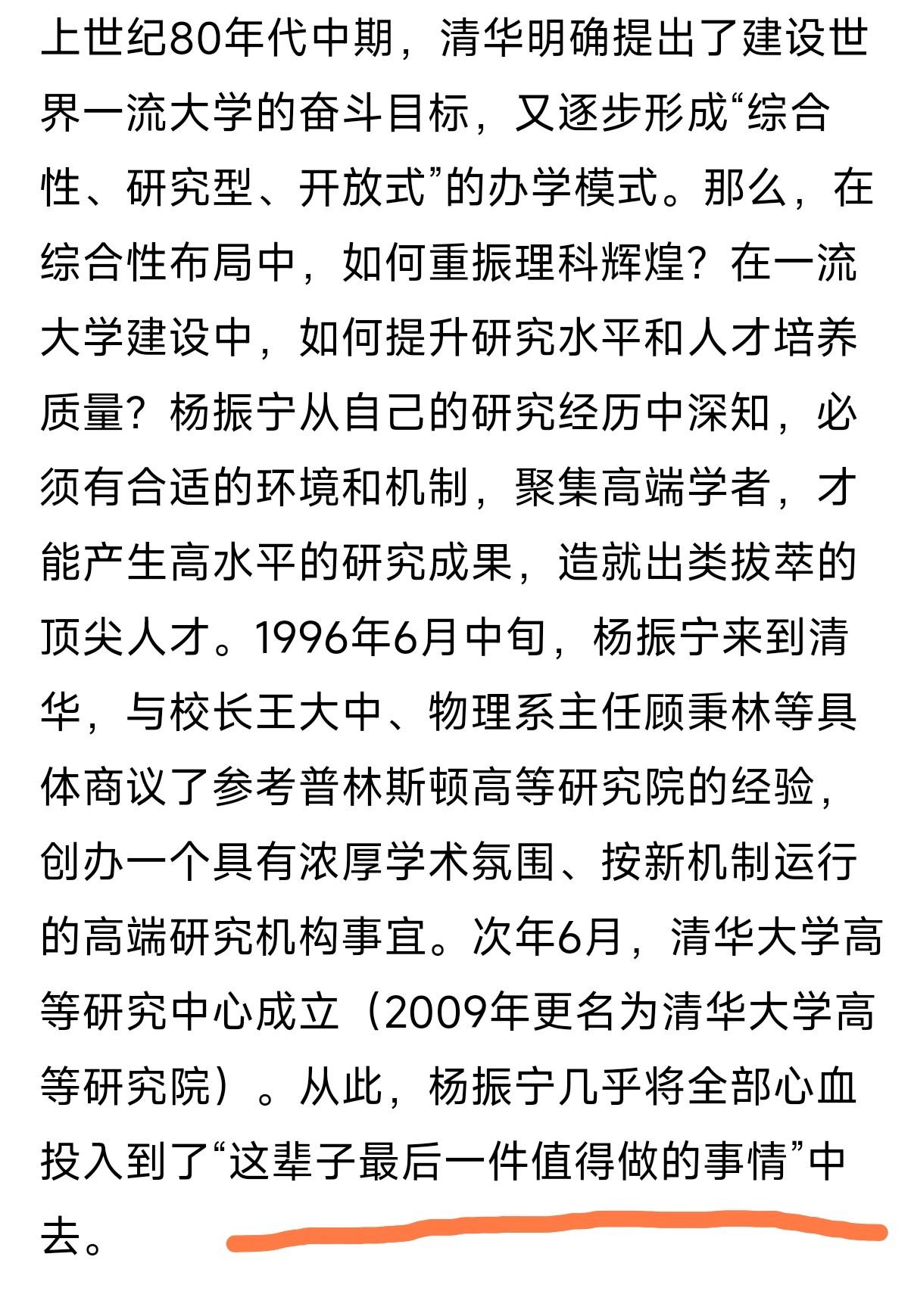 于个人,杨振宁1942年获得清华大学硕士学位,1997年在清华创办“高等研究院”,2003年回清华任教,“出于清华归于清华”,杨振宁完成“最完美闭环”。