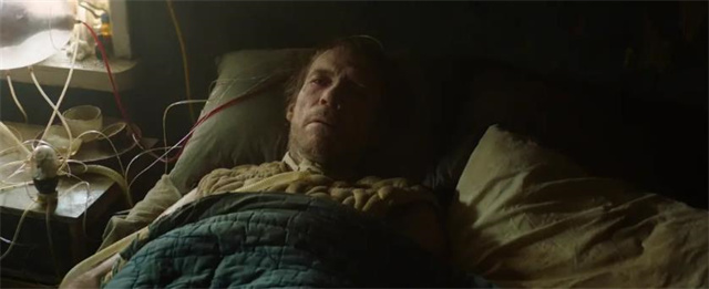 该片的男主就是这里的其中一个流浪汉,他跟着躺在病床上,靠着输液才能活下来的老爹一起过日子。男主除了拥有一个大头机器人外,几乎没有什么朋友。这个大头机器人并没有什么攻击性,唯一的作用就是给老爸当个信使,给老爸解解闷。在这样的末世中生存是非常困难的,男主必须每隔一段时间就把自己的血液出售给一名商人,以换取营养物质,让他的父亲活下去。