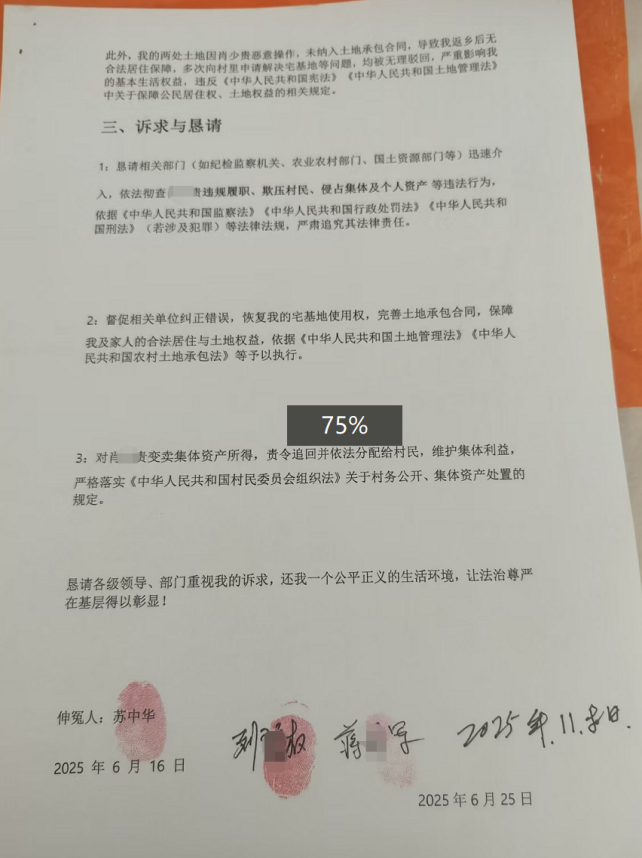“我只是一个普通农民,只想讨个公道。”苏中华在信中写道,“希望法治能在基层真正落地,让正义不被遮蔽。”