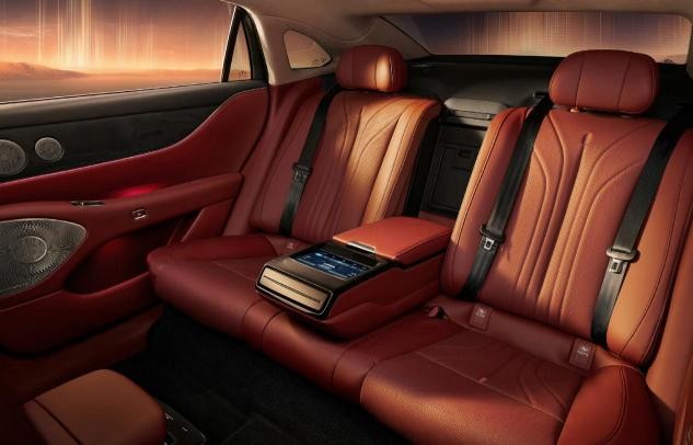 内饰部分延续家族式设计,环抱式座舱搭配悬浮式中控大屏,并且全液晶仪表重新回归,前方还有HUD抬头显示系统,带来出色的科技氛围。双色方向盘采用简约风格,配备电子怀挡,中央扶手区域提供双50W无线快充,还配备带独立压缩机的车载冷暖冰箱,实用性进一步提升。
