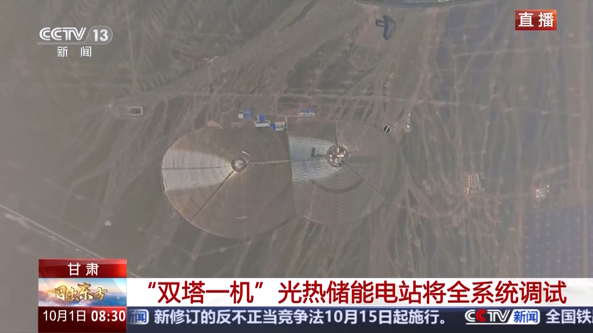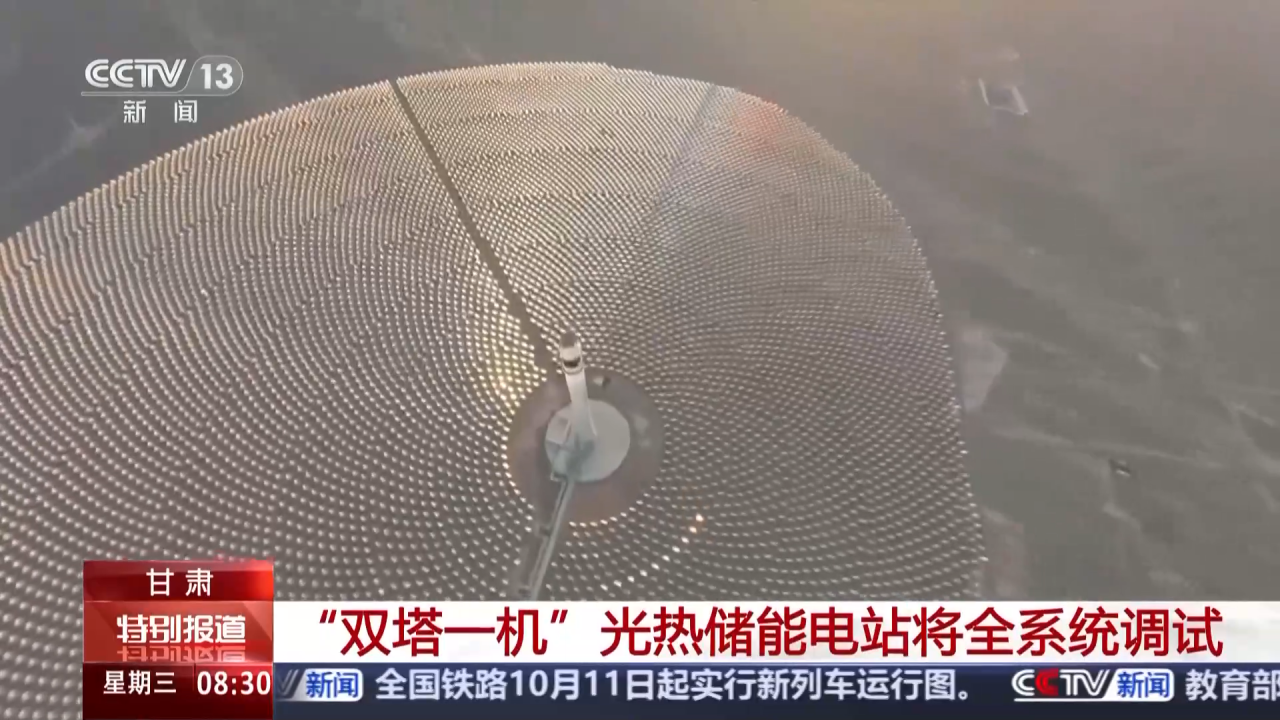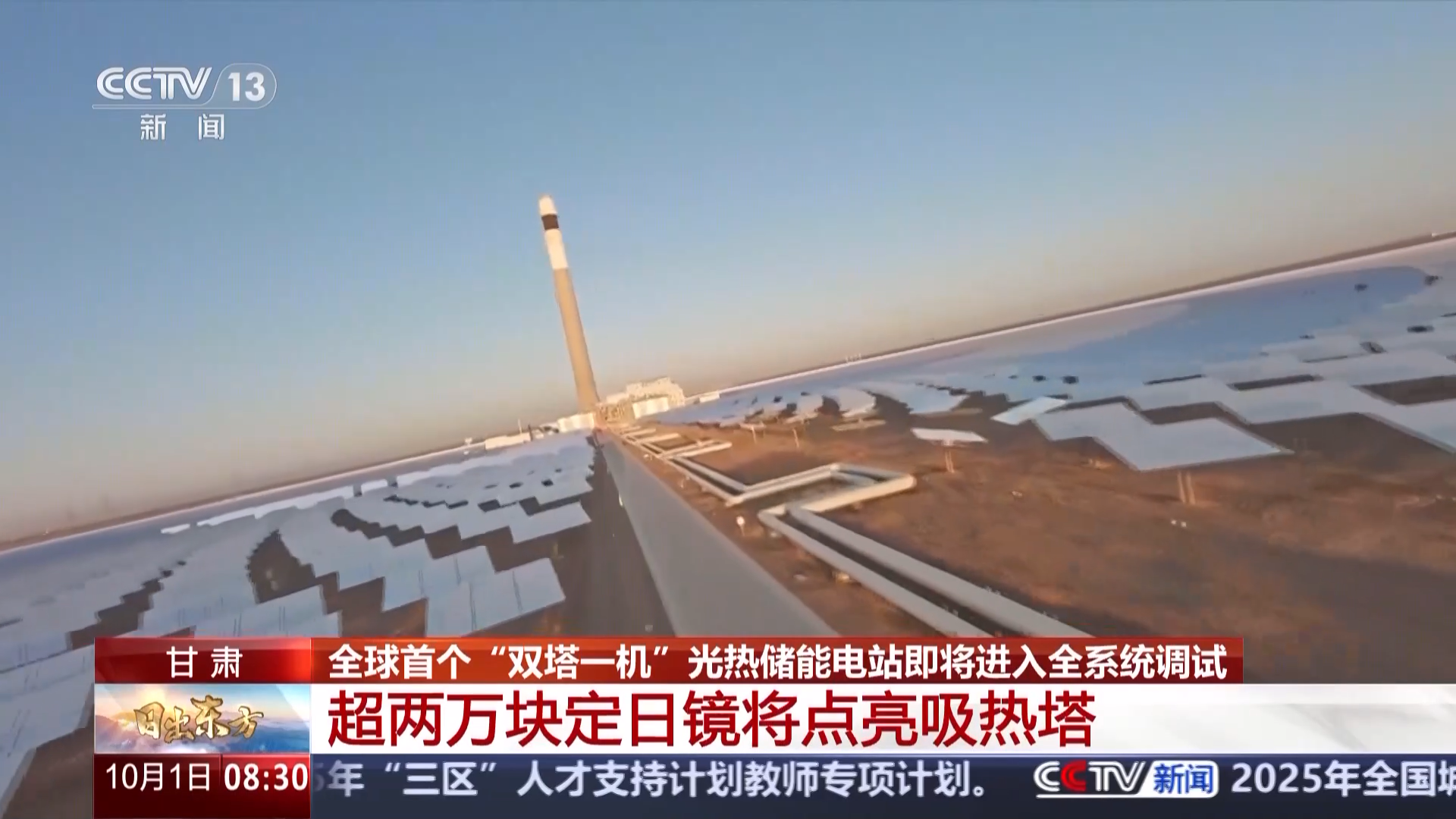在甘肃酒泉的瓜州戈壁上,一个震撼的场景正在上演:两座200多米高的吸热塔巍然矗立,周围27000多面银光闪闪的定日镜如涟漪般铺展,将茫茫大漠变成了能源收集的宝地。这就是全球首个“双塔一机”光热储能电站,十月一日正式进入全系统调试阶段。