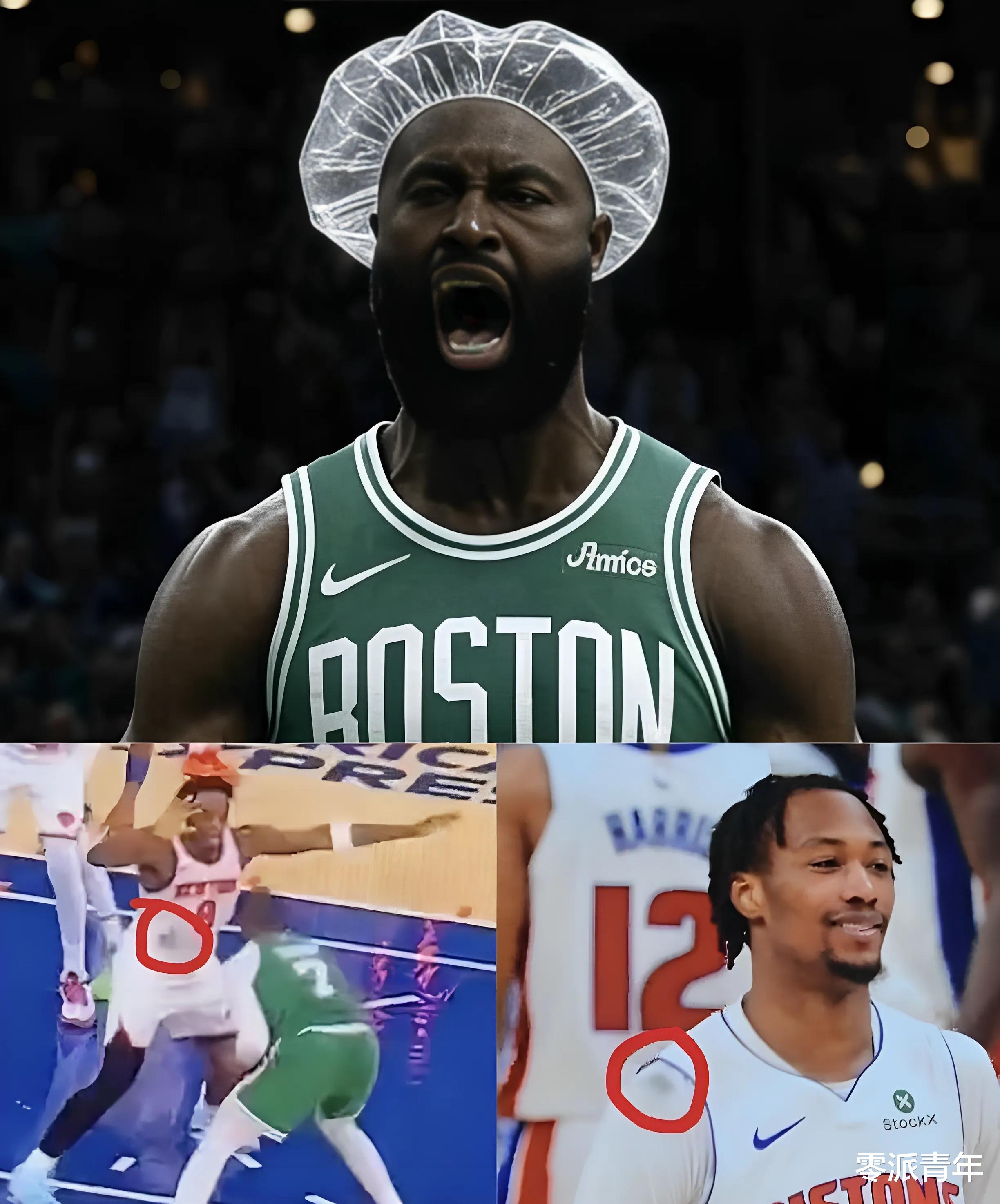 凯尔特人与尼克斯的常规赛中,一段视频在网络疯传,内容为阿努诺比球衣上出现一条黑色痕迹,疑似是杰伦布朗的头发摩擦造成。到了对阵活塞的比赛中,又有照片显示罗恩·霍兰德球衣上出现类似痕迹,让网友纷纷调侃杰伦布朗的“染发事件”,成为社交话题焦点。