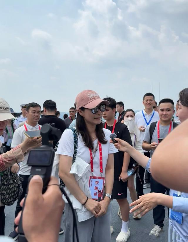 非常幸运,郭晶晶一家抢到了票,能亲自登上山东舰参观。面对媒体的采访,郭晶晶非常从容。她身上的气场越来越强,应对社交媒体更加镇定自若。