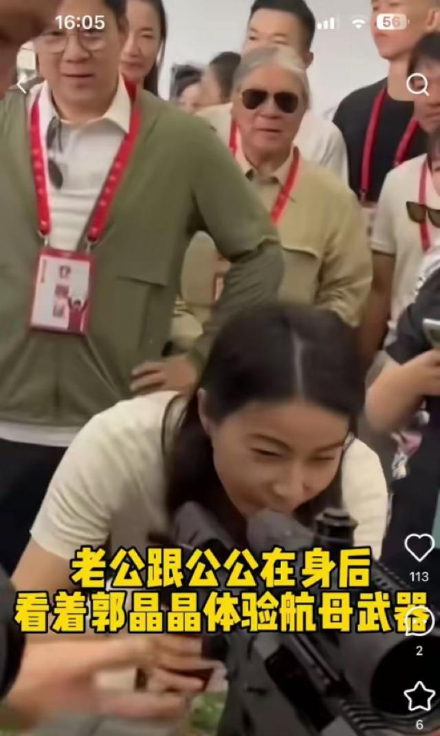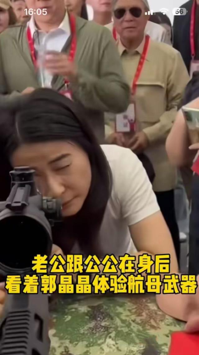 最让人兴奋的是郭晶晶还亲自体验了枪械操作,体验航母武器的郭晶晶,一脸认真。那个瞬间在她脸上看到了威严和自豪。