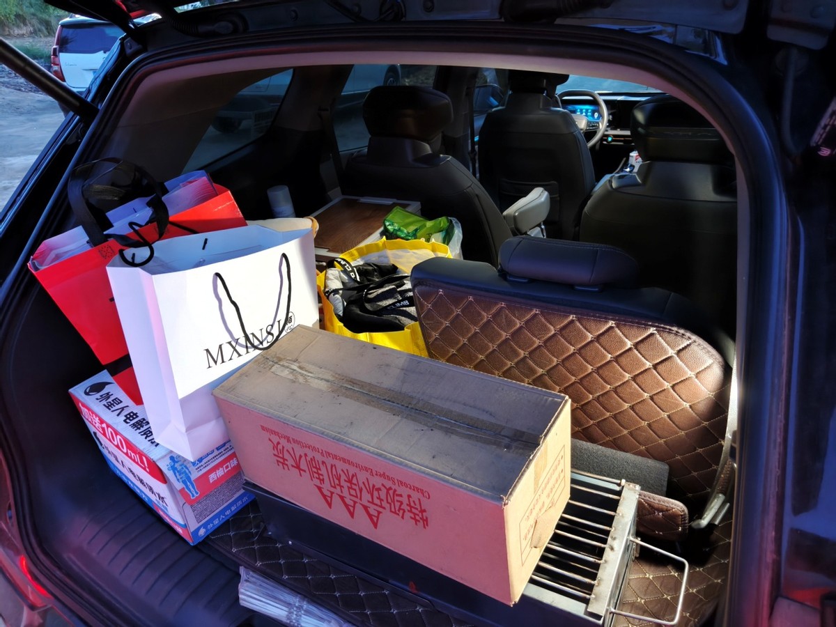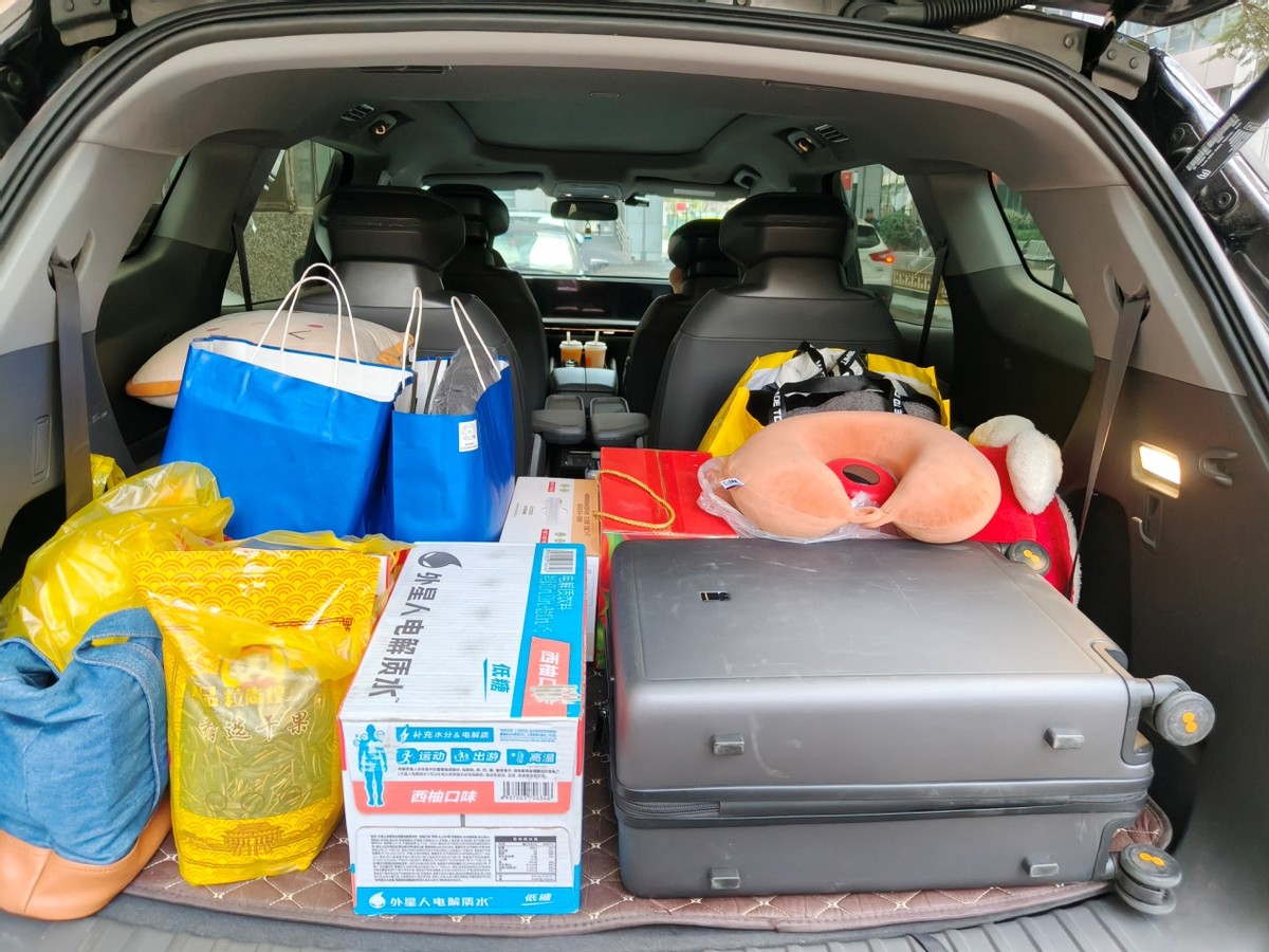 本以为昨天晚上就结束了,不不不,那才是刚刚开始,十一早上出发前,继续装,来吧!展示,这才是锐界L后备箱真正的实力,三排座椅放倒,秒变小货车的装在能力