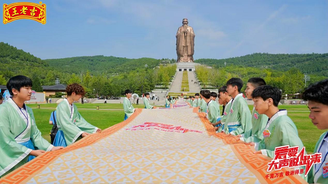 在2025年8月底至9月初教师节前夕,王老吉润喉糖走进全国8所标杆学校,收集学子“最想对老师说的一句话”,活动吸引逾近万名师生家长参与,最终精选1828条学子谢语,汇集成“百米有声感恩长卷”,并在尼山圣境谢师礼上作为献礼呈现。