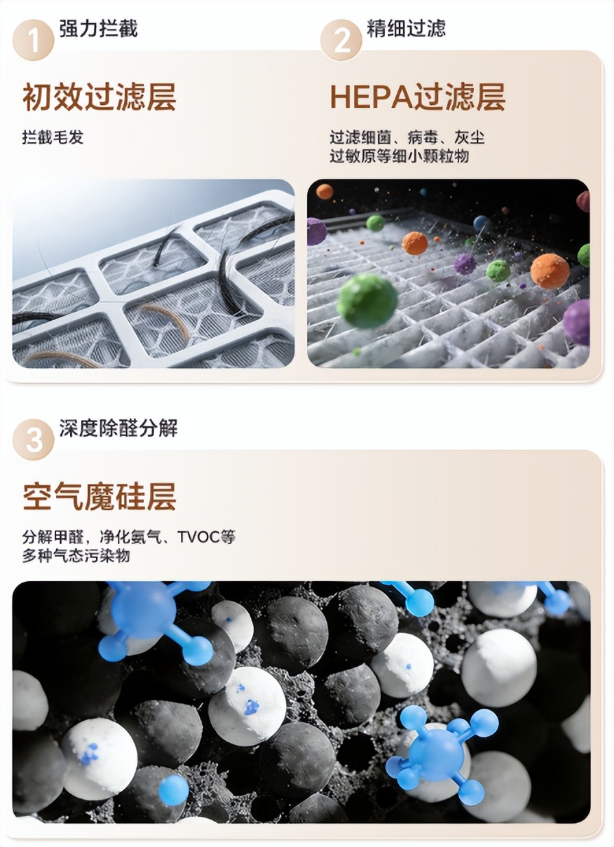 3. 异味克星:空气魔硅技术,告别霉味、烟味鼻炎患者对异味非常敏感,厨房油烟、宠物异味、房间霉味,都能引发连锁反应。