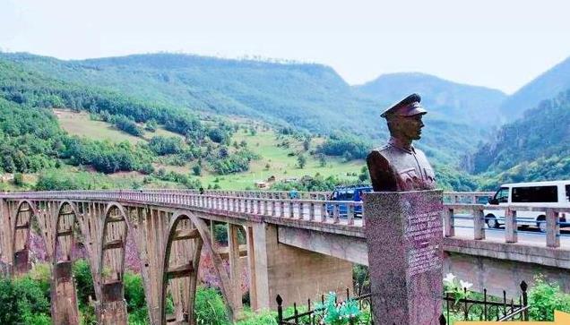 在塔拉河峡谷大桥桥头矗立着一尊雕塑,用以纪念南斯拉夫英雄博日达尔·祖季奇。许多人会误以为他就是《桥》中的游击队指挥官“老虎”的原型。然而,实际情况并非如此,博日达尔·祖季奇并非炸桥游击队员,亦非铁托麾下士兵,而是南斯拉夫王国国防军的一名中尉。在抵抗意军入侵过程中,他拒绝服从上级投降指令,率部奋勇作战直至壮烈牺牲,其英勇事迹赢得了敌方尊重与赞扬。由于祖季奇的故乡即为塔拉河峡谷,其家属为其在此处设立了这座雕塑。
