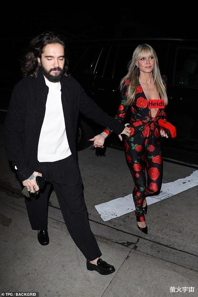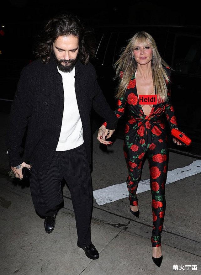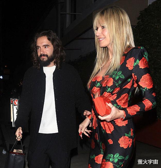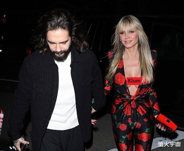 49岁超模海蒂·克鲁姆夜行,衣襟开到肚脐,打包自己送给小16岁的丈夫