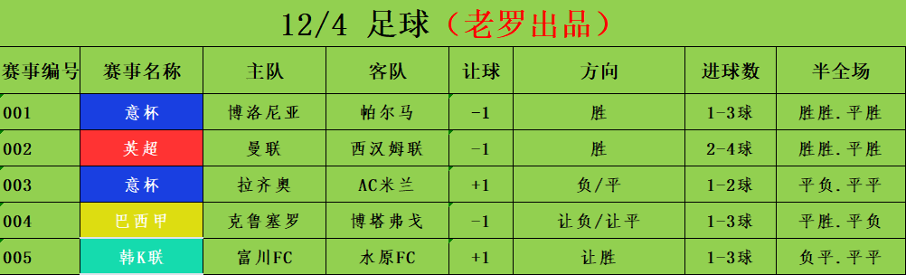 12/4足球竞彩推荐 赛事分析预测 意杯 博洛尼亚vs帕尔马