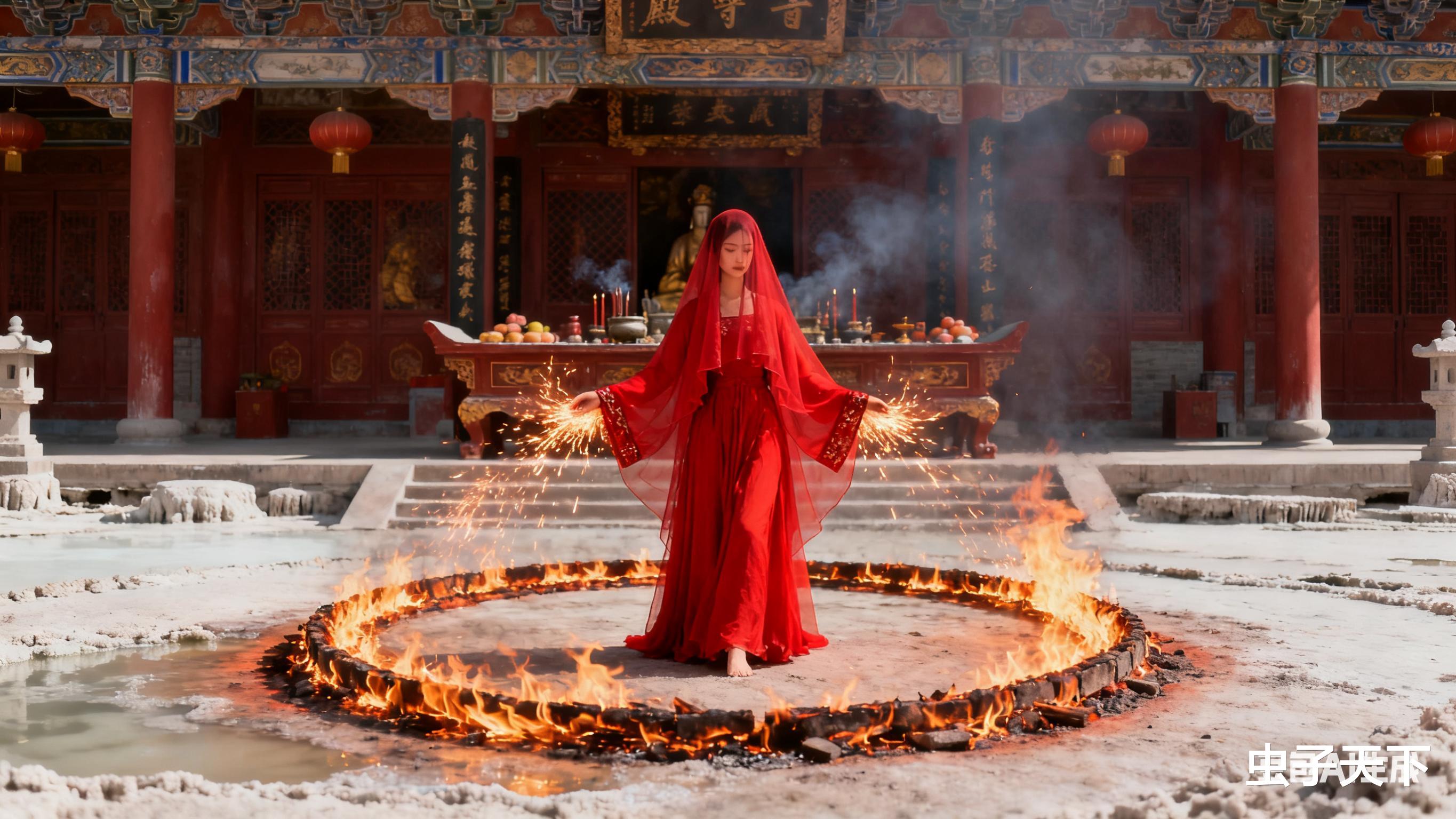 洪锦刚进门,供桌就“吱呀”响,红衣娘娘的袖口飘出火星,转眼就围成个火圈。