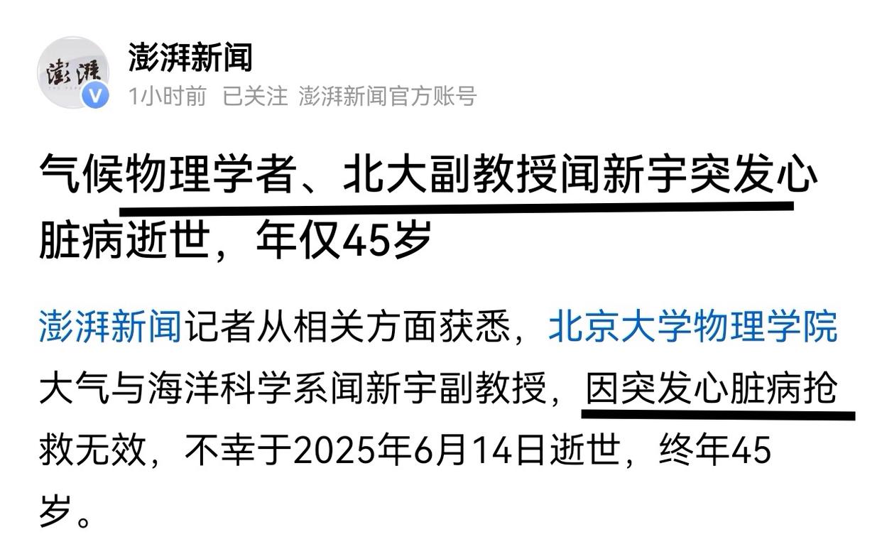青年学者的离世,既让人痛心又让人惋惜,培养一名优秀的学者需要耗费漫长的时间,付出大量的努力,可正当他们在发光发热的时候,突然倒下了!