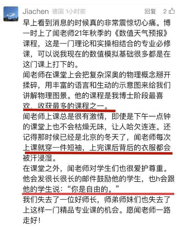 在闻老师去世后,遍布于全球各地的学生纷纷发文悼念: