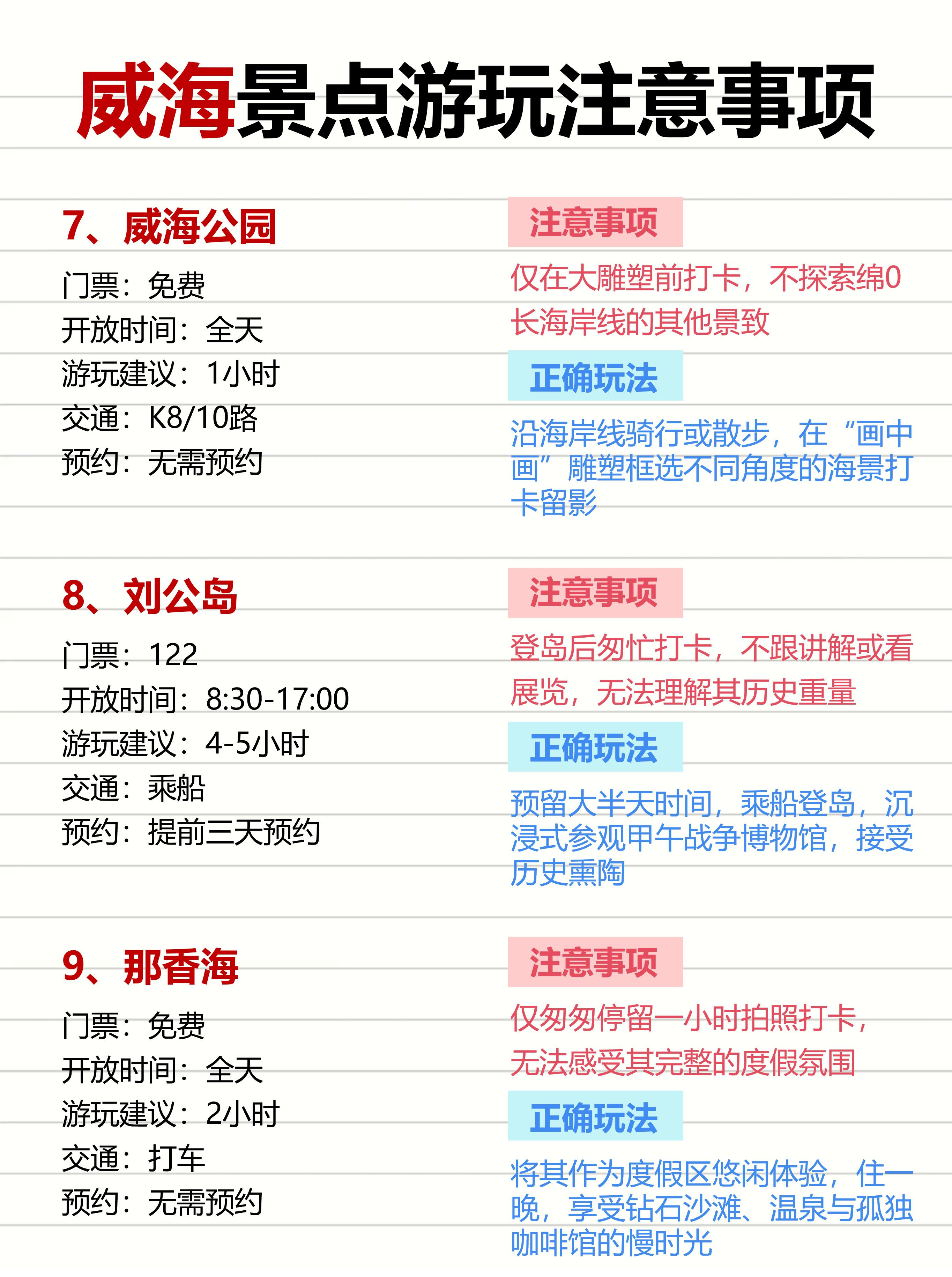 ✔ 刘公岛必提前购票!早班船人少不晒,记得查末班船时间(17:00左右),岛上餐厅贵建议自备干粮