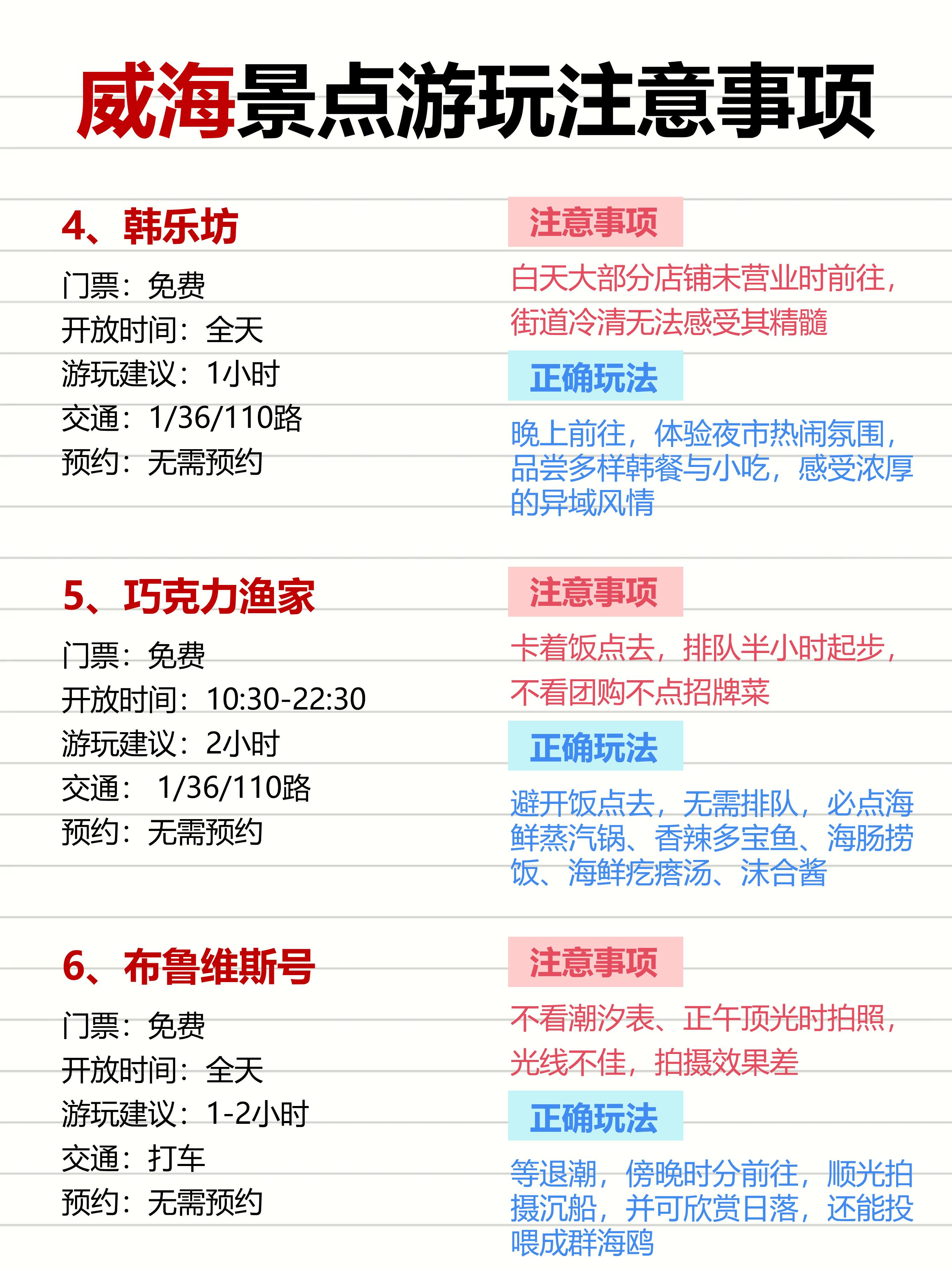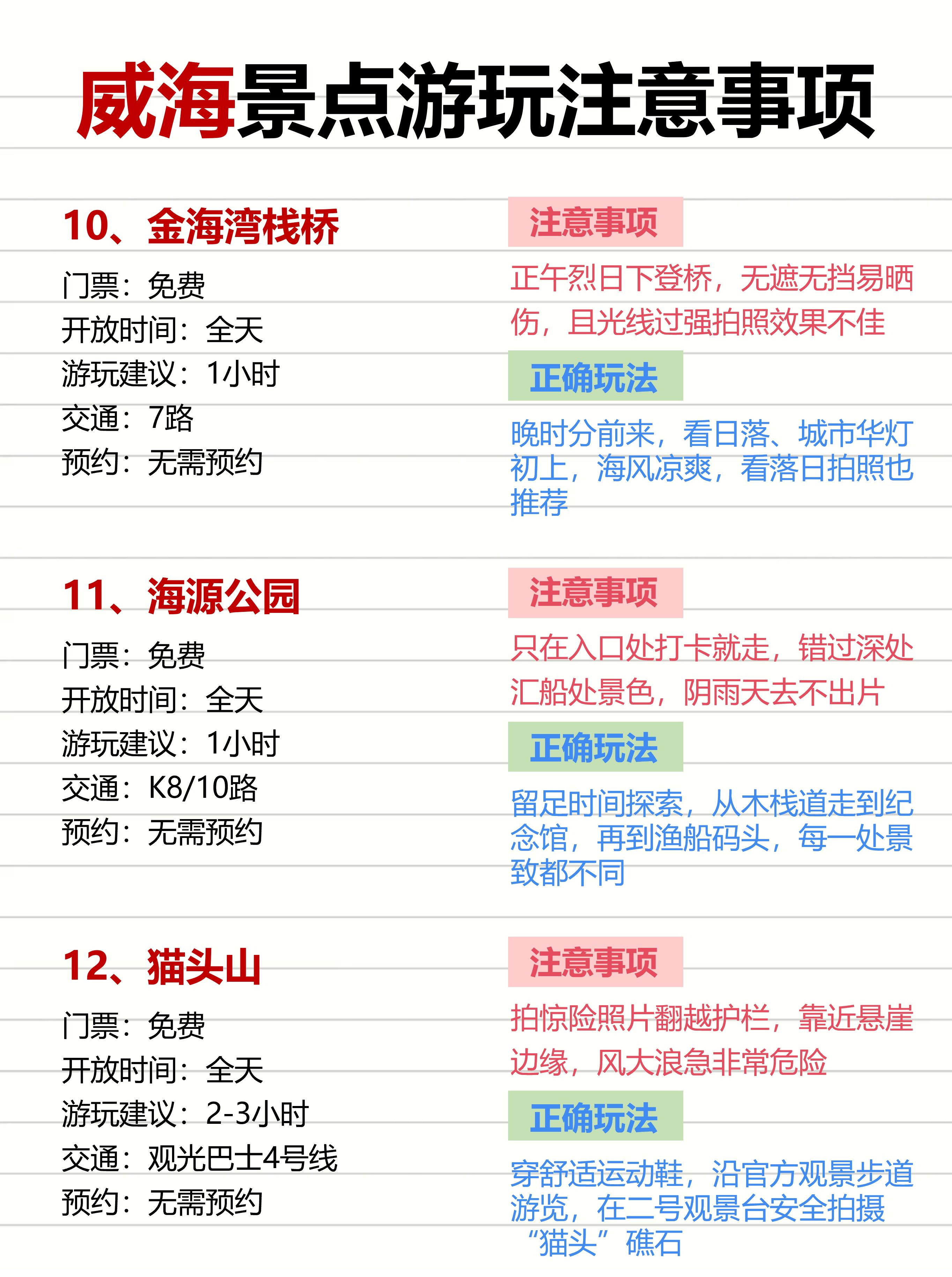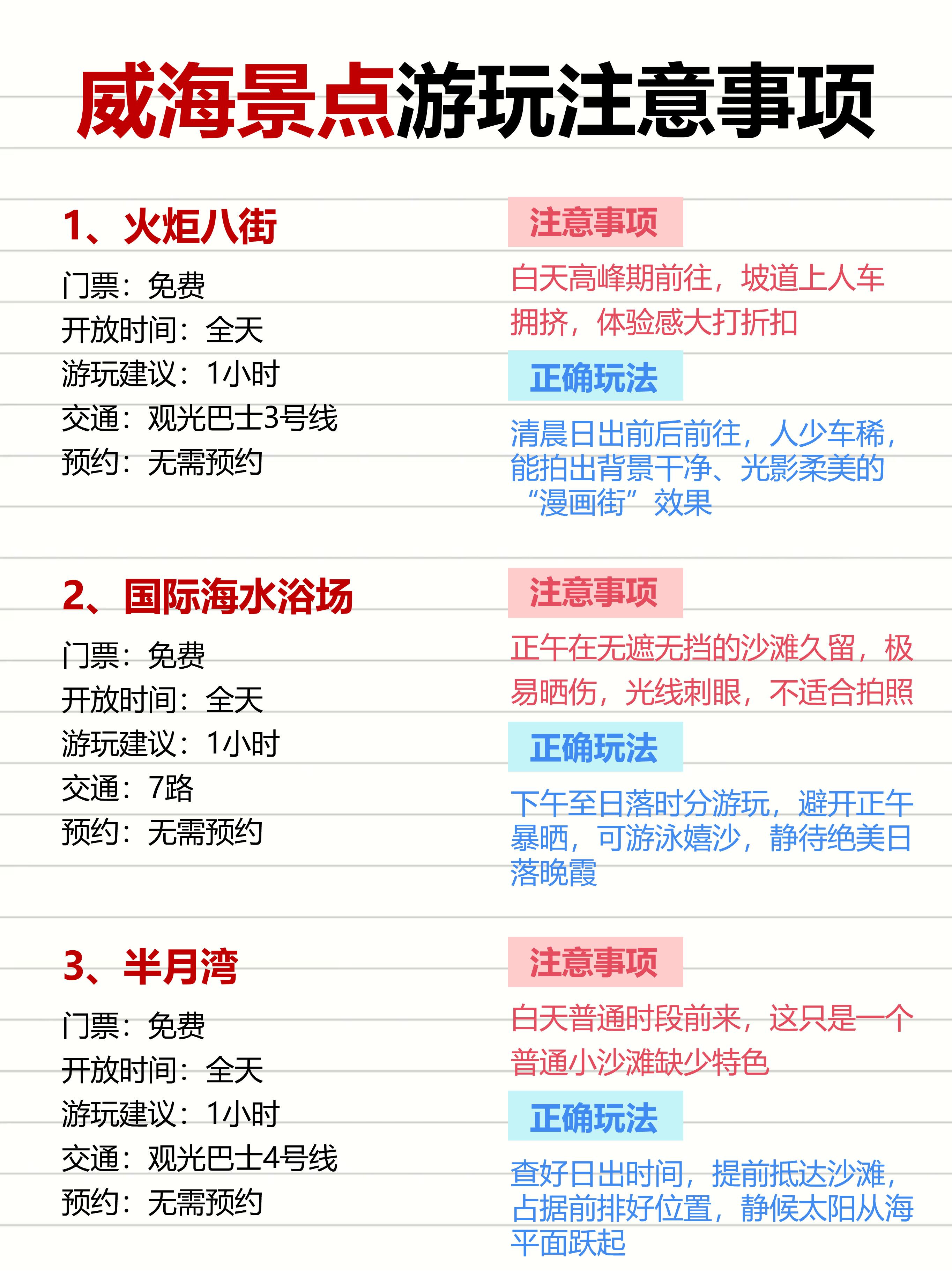 ✔ 半月湾看日出前查好方向,部分位置有建筑遮挡,别跑空✔ 博物馆、美术馆周一闭馆,计划行程时避开