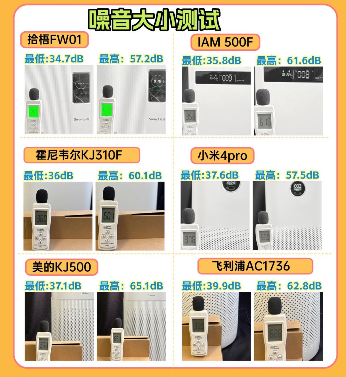 噪音控制中等:霍尼韦尔KJ310F、IAM 500F、小米4pro