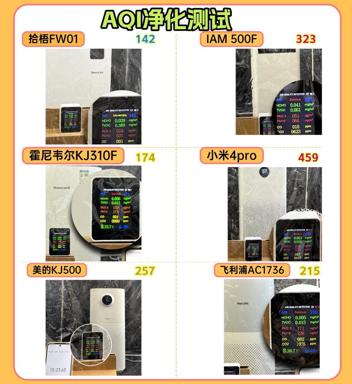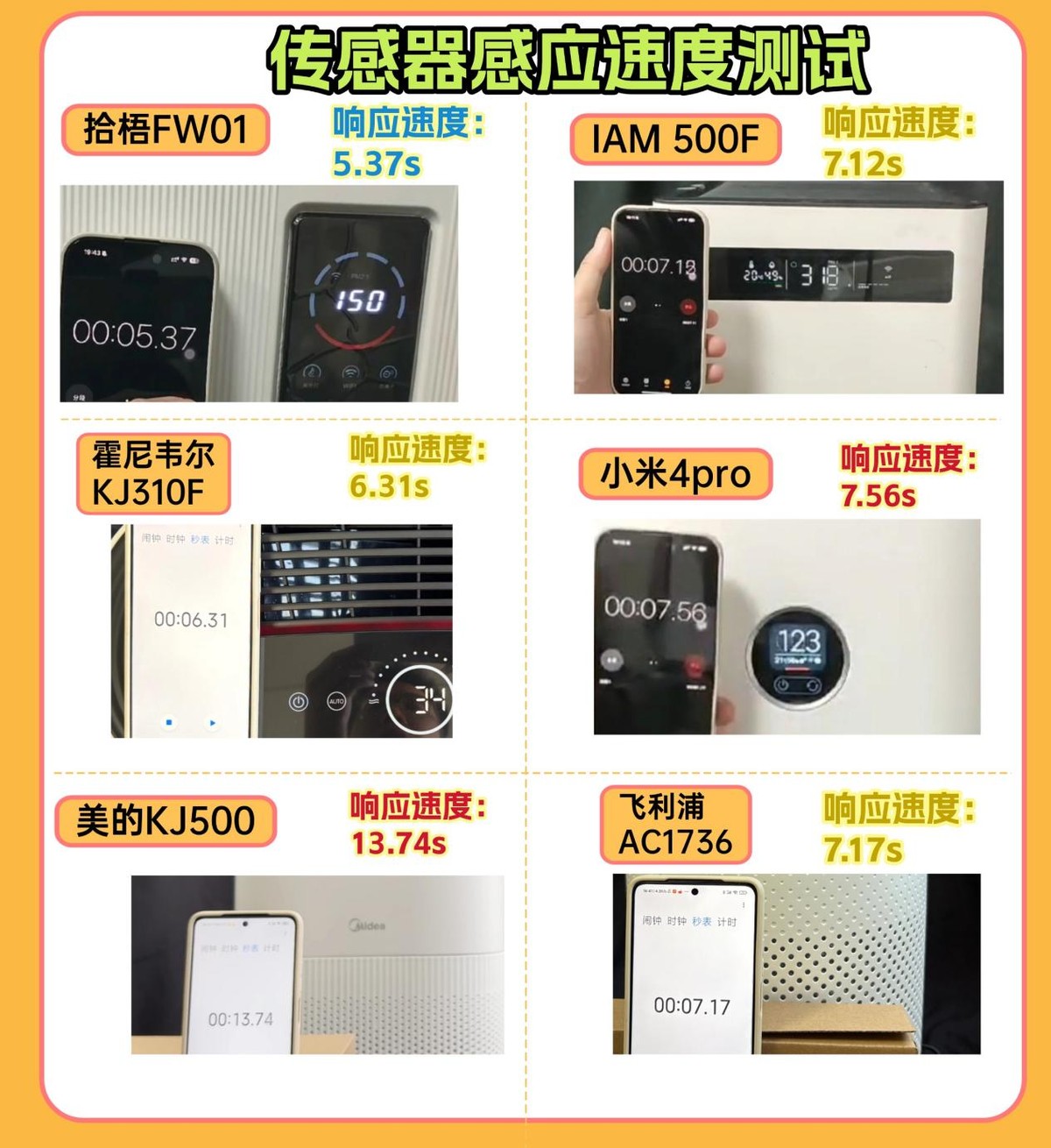 霍尼韦尔KJ310F、IAM 500F和飞利浦AC1736也在6-7秒左右,表现处于中等水平,但在突发污染应对上仍略显滞后。