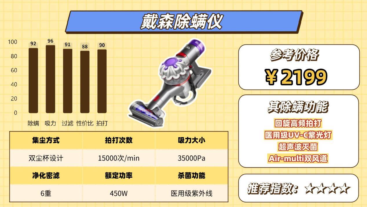 此外,产品还搭载紫外线杀菌功能,能在吸尘除螨的同时对床单、沙发等表面进行紫外线消毒,进一步提升清洁效果。不过,该机型定价较高,性价比在一定程度上有所欠缺,可能更适合预算充足、追求品牌与性能的用户。