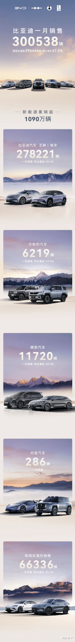 当然了,比亚迪能够在 1 月取得如此优异的成绩,离不开其多年来在技术研发、产品布局和品牌建设方面的深耕细作,无论是在技术研发上,还是在产品布局上,又或者是在品牌建设上,比亚迪都凭借产品和技术赢得市场。2025年,比亚迪将推出更多具有竞争力的新产品,不s断拓展国内外市场,为消费者带来更多优质的出行选择。