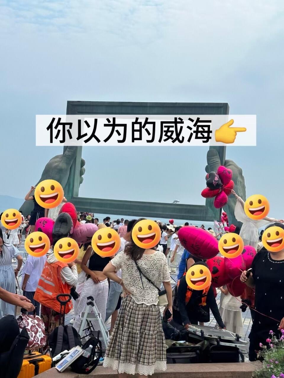 ✔️你以为的威海是文艺清新的相框打卡地📸,实际是热闹的人群聚集地~不过这个巨型相框和大海同框真的很出片,建议错峰前往哦~