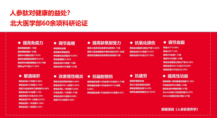 这款被称作“人参娃娃肽”的亿葆康宁人参肽,正是这份千年滋补智慧与现代科技的完美交融。产品严选长白山4-5年生道地人参为核心原料,萃取“千草之灵”的活性精粹,搭配牛骨胶原蛋白肽进行科学复配,在传承人参固有滋补功效的基础上,强化了骨骼养护与细胞修复的双重价值。依托国药肽谷十余年深耕的小分子酶解专利技术,产品将肽分子量精准控制在1000道尔顿以下,其中51%以上处于180-500道尔顿的黄金吸收区间,无需消化即可直接穿透细胞膜,30分钟快速起效,像“人参娃娃”般温柔滋养,从根本上解决了传统人参“吸收难、利用低”的行业痛点,让“百药之长”的滋养力直达细胞深处,被国家奥林匹克体育中心指定产品。