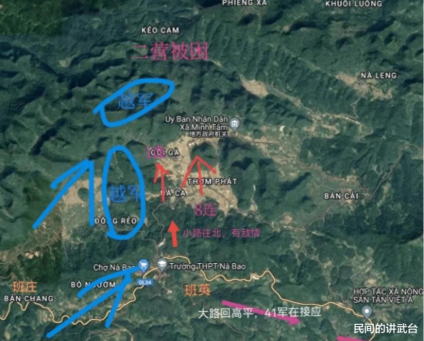 3月12日傍晚,448团决定派出副参谋长付培德带领1连、8连前去求援,开始付培德不愿意去,我们无法得知他的心理,但可以猜得出来,500多人的二营都出不来,2个连又怎么去救援,这是明罢着的事情。越军主力346师851团回来了,尾追撤军的中国军队,这是150师部他们不知道的敌情变化。于是付副参谋长带领1连、8连前去求援二营,通过密林后,1连在左呈攻击队形搜索前进,发现没有敌情后,8连在右向朗庄前进。