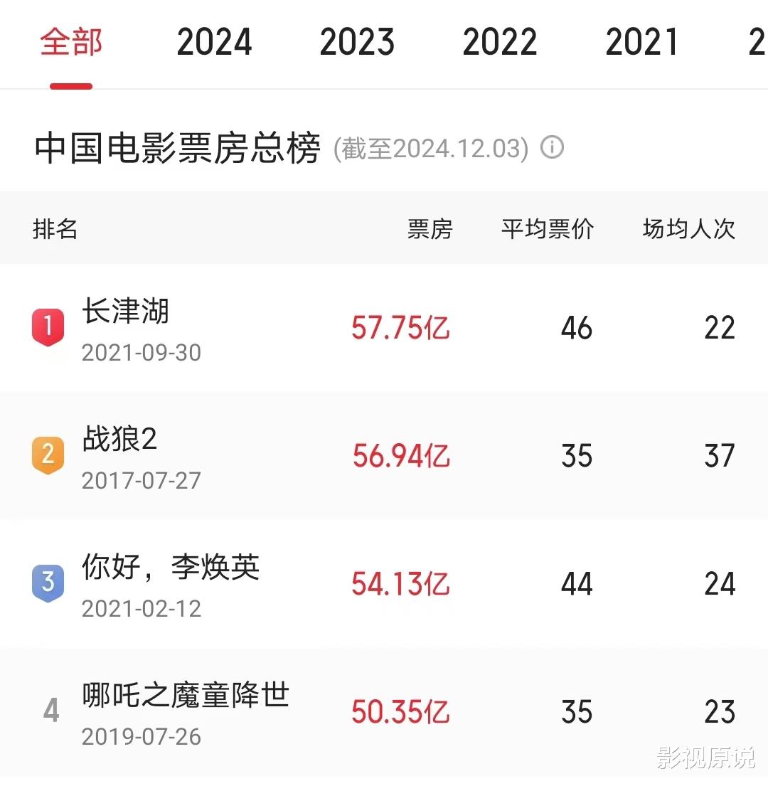 我们都知道,中国位居中国影史票房榜前三名的电影分别是《长津湖》《战狼2》和《你好,李焕英》,其中的《长津湖》国内累计总票房超过了57亿人民币,稳居票房冠军的位置;《战狼2》则以近57亿人民币的票房成绩位列第二名;另外一部《你好,李焕英》的总票房则是54.13亿人民币,位列第三。