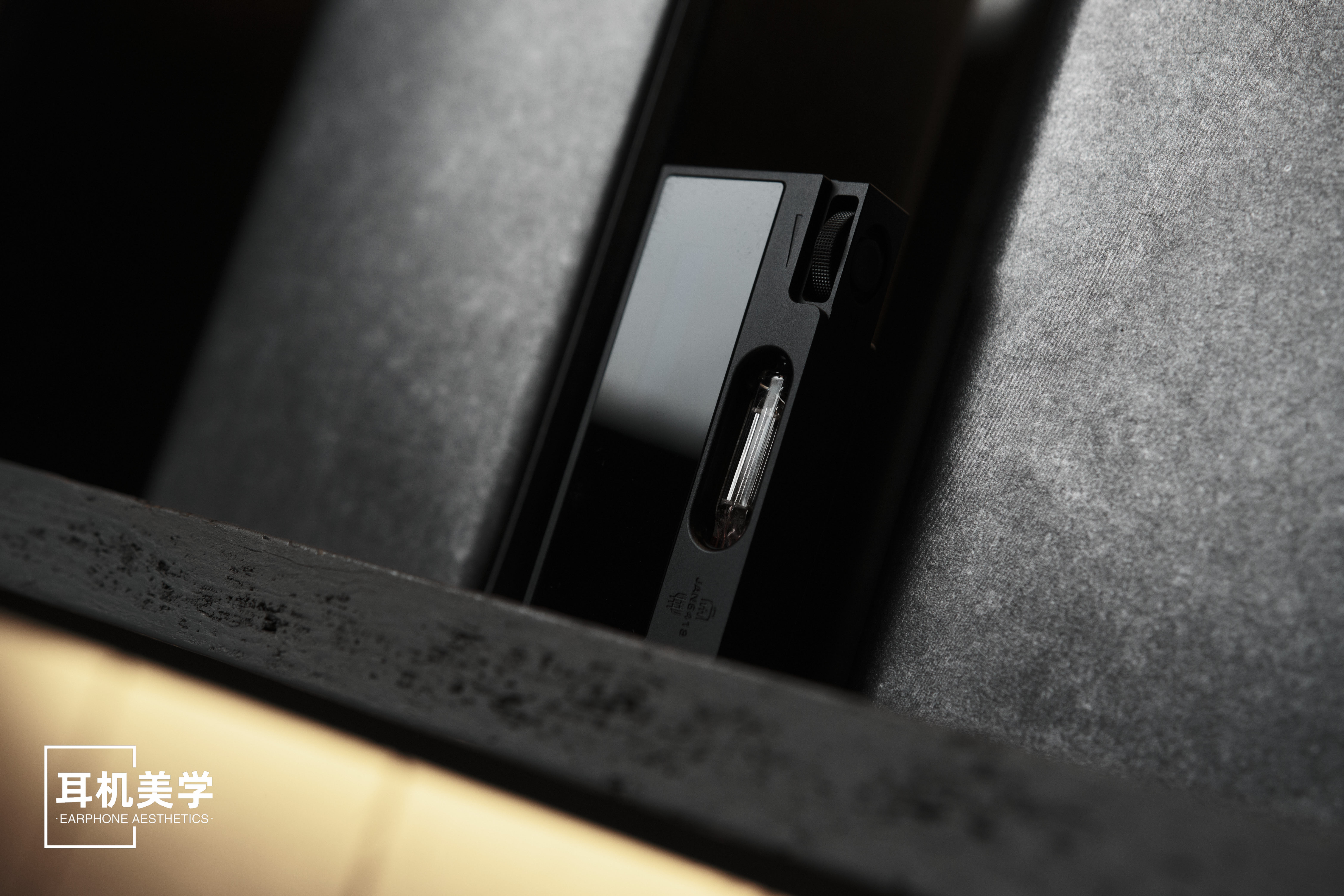 从外观上来看,UA7 相比大多数小尾巴在体积上确实要稍大、稍宽一些。正面搭载了一块 0.87 英寸的 OLED 显示屏,在熄屏时与玻璃盖板融为一体,整体观感干净利落。侧面配备了一个旋钮与多功能控制按键,并能看到那两颗 JAN6418 电子管。旋钮的手感是带段落感的,搓动时的阻尼感恰到好处,而在功能操作上,旋钮与按键的组合逻辑也相当顺手。