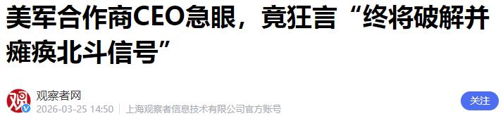 美军合作商CEO急眼,竟狂言“终将破解并瘫痪北斗信号”
