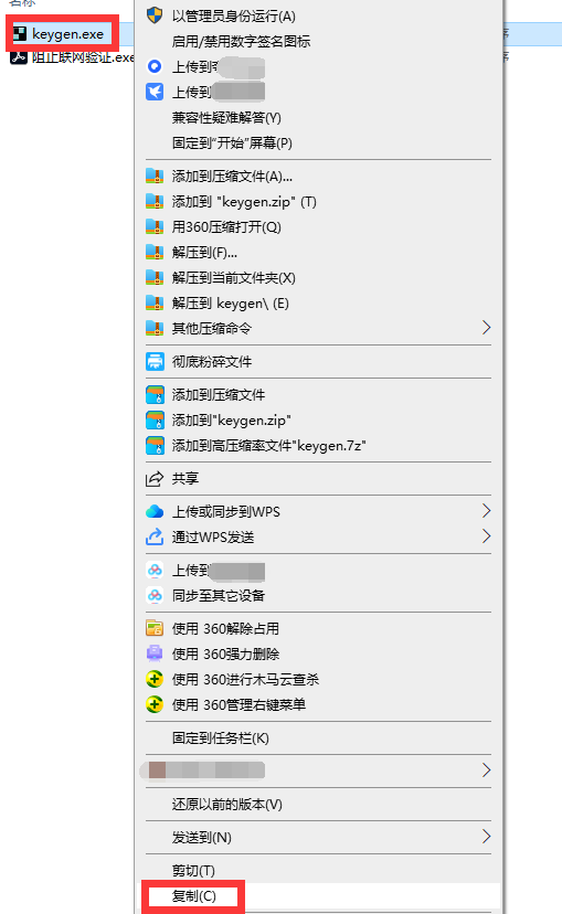 12、找到【keygen】文件,鼠标右键,选择【复制】。