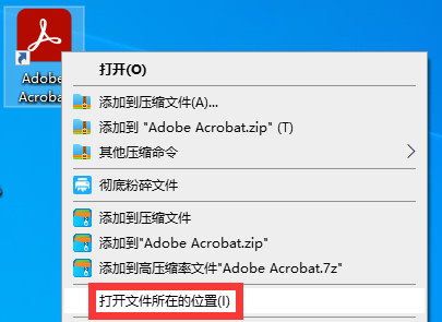 13、在电脑桌面找到【Adobe Acrobat】软件,鼠标右键,选择【打开文件所在的位置】。