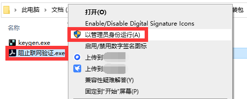 9、找到【阻止联网验证】文件,鼠标右键,选择【以管理员身份运行】。