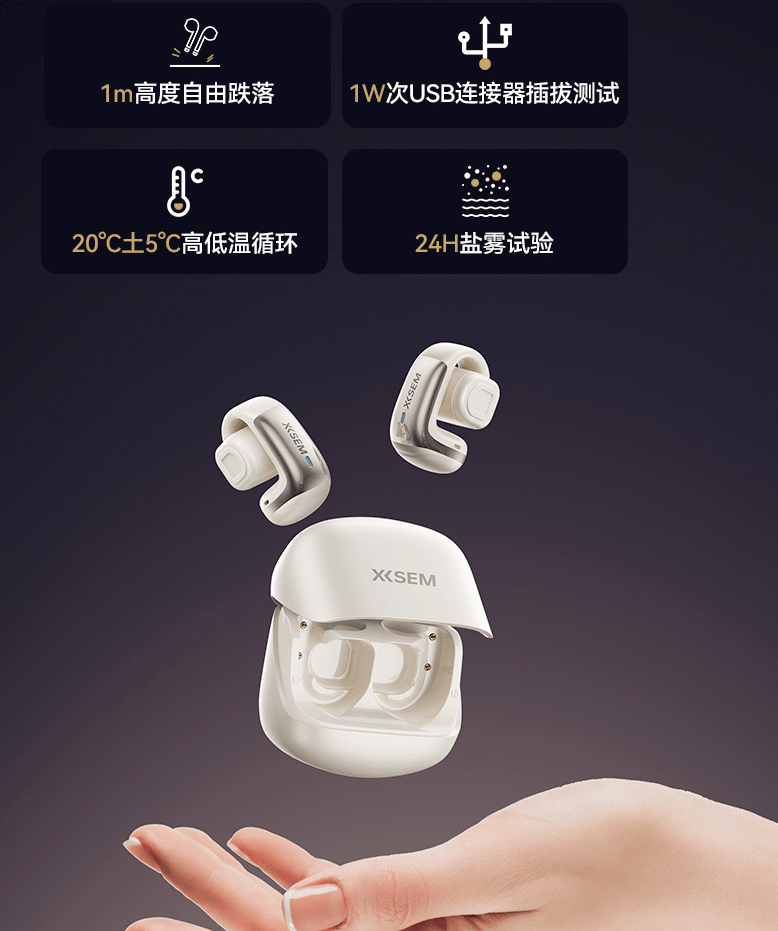 测试覆盖1米高度自由跌落、万次USB插拔、高低温循环以及24小时盐雾试验等严格环节,确保每一台出厂耳机都能经受极限考验,西圣Plume用对标千元高端的用料和检测流程,完美诠释“低价不低质”,让百元耳机也拥有千元旗舰级做工品质!