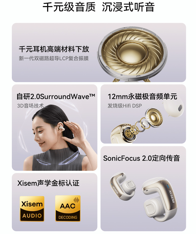 在核心声学技术上,Plume通过Xisem实验室严格验证和优化耳机声学腔体、振膜材料及驱动单元,确保每一处细节都达到高标准,所以Plume被授予西圣声学金标认证—在同价位开放式耳机中,它有着私密音效 + 高保真音质”的全方位升级,更实现了堪比千元级产品的听音精度与沉浸感!