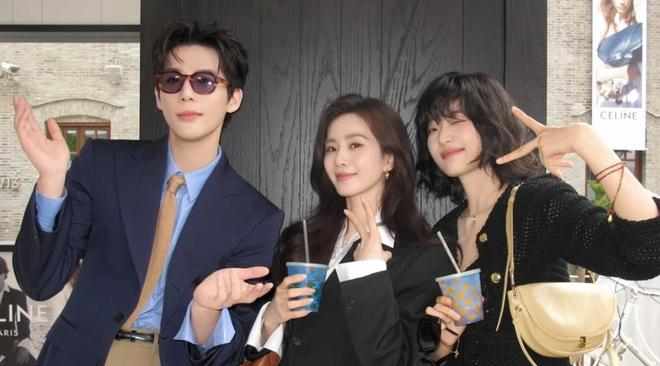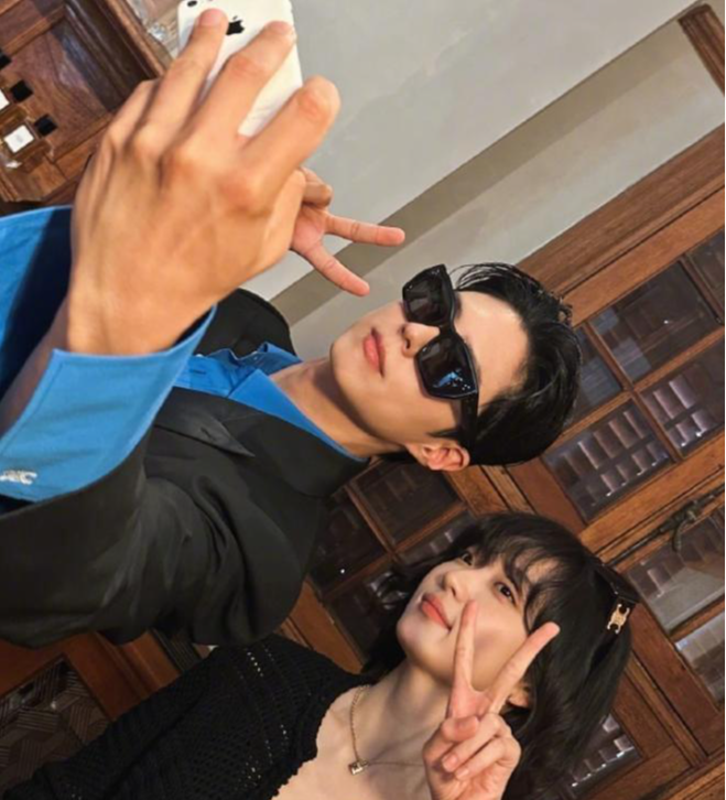 还有韩国演员朴宝剑,他的气质温和干净,站在四人中间,和大家一起拍人生四格,各种搞怪互动,一会儿比耶,一会儿歪头浅笑。