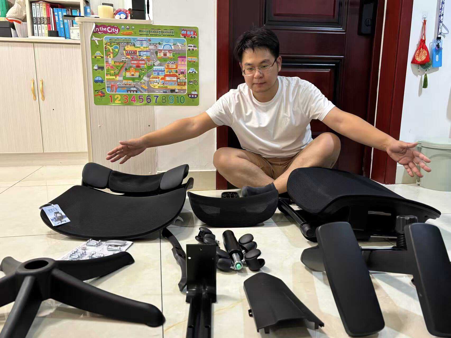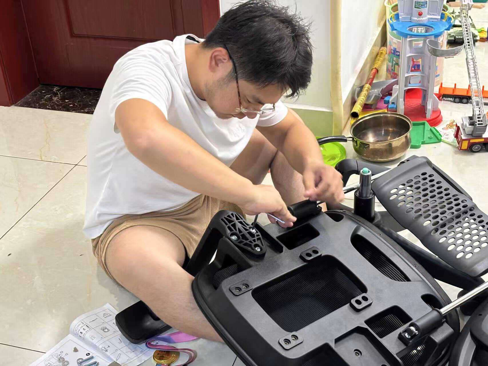 打开包装的第一印象是:扎实。从4级防爆气压杆到高承重铝合金五星脚,每一个部件都透出“硬核”气质。3岁的宝宝也很高兴的和我一起动手安装起来,安装过程很简单,20分钟轻松搞定。