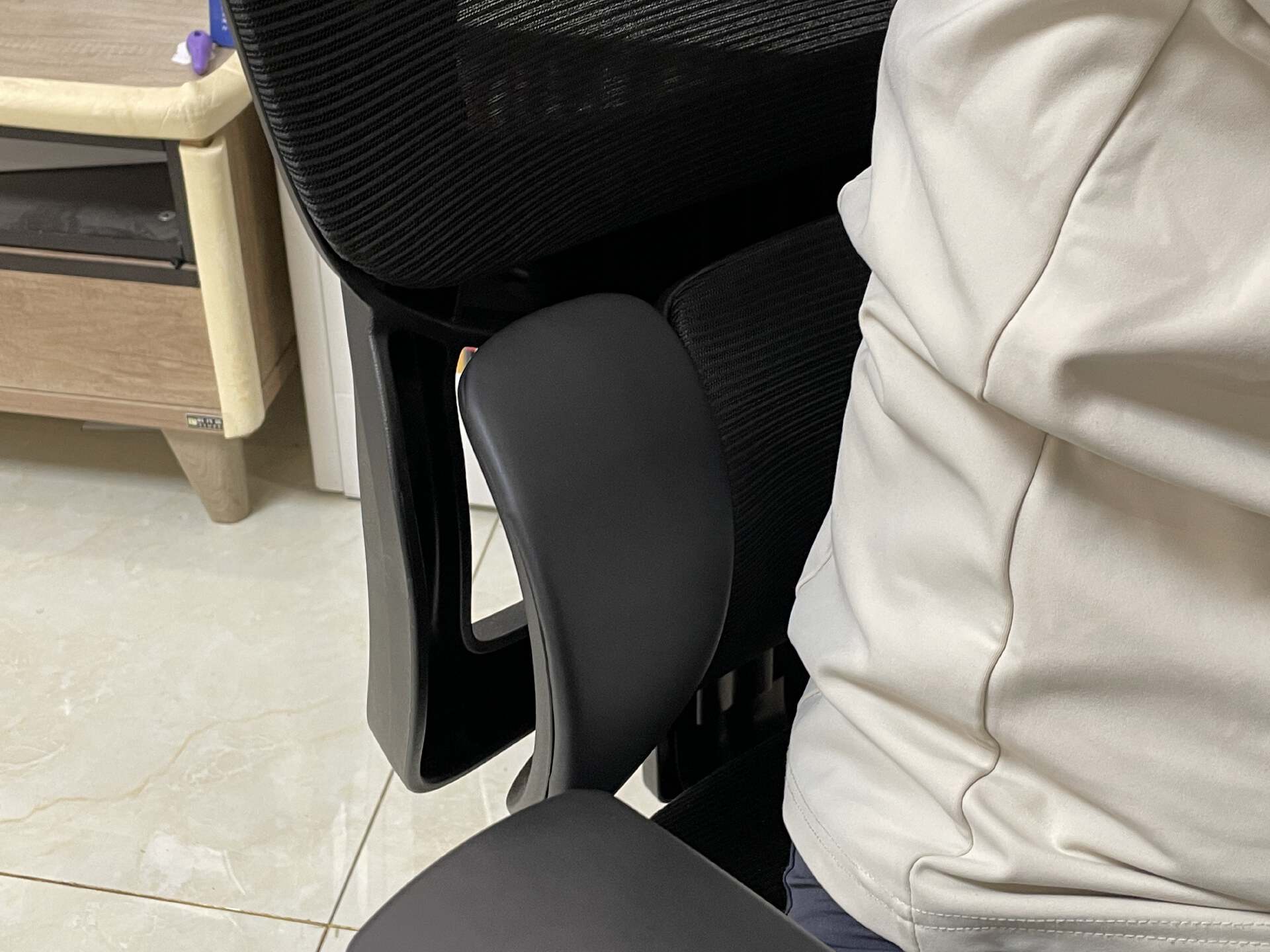 我试着左右轻微晃动身体,腰靠居然会跟着我动!它不是机械地回弹,而是像有生命一样“追”着你的腰椎。官方说这是“微米级智能响应”,我虽然看不到微米,但我能感觉到——我的腰,第一次没有被椅子“抛弃”。