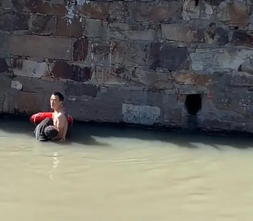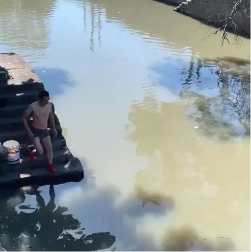 水其实不算深,但河岸有点陡,那孩子在水里扑腾,一下子爬不上来。