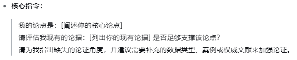 对于论据单薄和分析不够深入的地方,将自己的核心论点发给AI,要求其评估现有论据是否充分,并指出可能缺失的论证角度或数据支持类型。AI通常会建议补充案例、引用文献或增加数据分析等方向。但同样要注意的是,AI生成的论据和文献可能存在虚构的现象,这时我们必需要对其生成的内容进行验证,确保所补充内容真实可信,并能和原有论点紧密贴合,避免出现论据与论点脱节的情况。