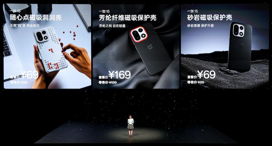 本次发布会上,一加也带来多质感与实用性兼具的配件产品。一加无限探索双肩包,售价 299 元;一加 15 系列随心点磁吸洞洞壳,售价 69 元;一加 15 系列芳纶纤维磁吸保护壳,售价 169 元;一加 15 系列砂岩磁吸保护壳,售价 69 元;150W 超能核超级闪充移动电源,售价 299 元。