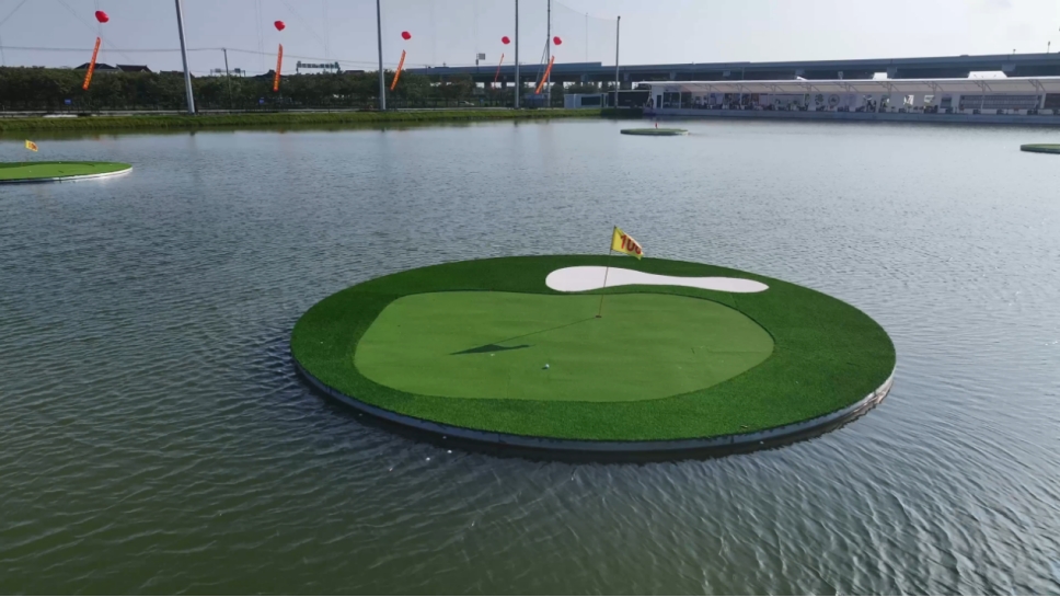 不同于传统高尔夫的一片绿茵,金汇飞云岛水上高尔夫把球场搬到了碧波荡漾的湖面之上。你的目标不是远方的草坪,而是错落分布在水面上的圆形浮动果岭。初春的微风掠过水面,带着泥土的芬芳和湖水的清爽。在这里挥杆,每一次发球都是对自然的深情拥抱,看高尔夫球在空中划出弧线,最终落入水里激起一圈圈涟漪,或是精准“登岛”,那种治愈感是室内练习场给不了的。