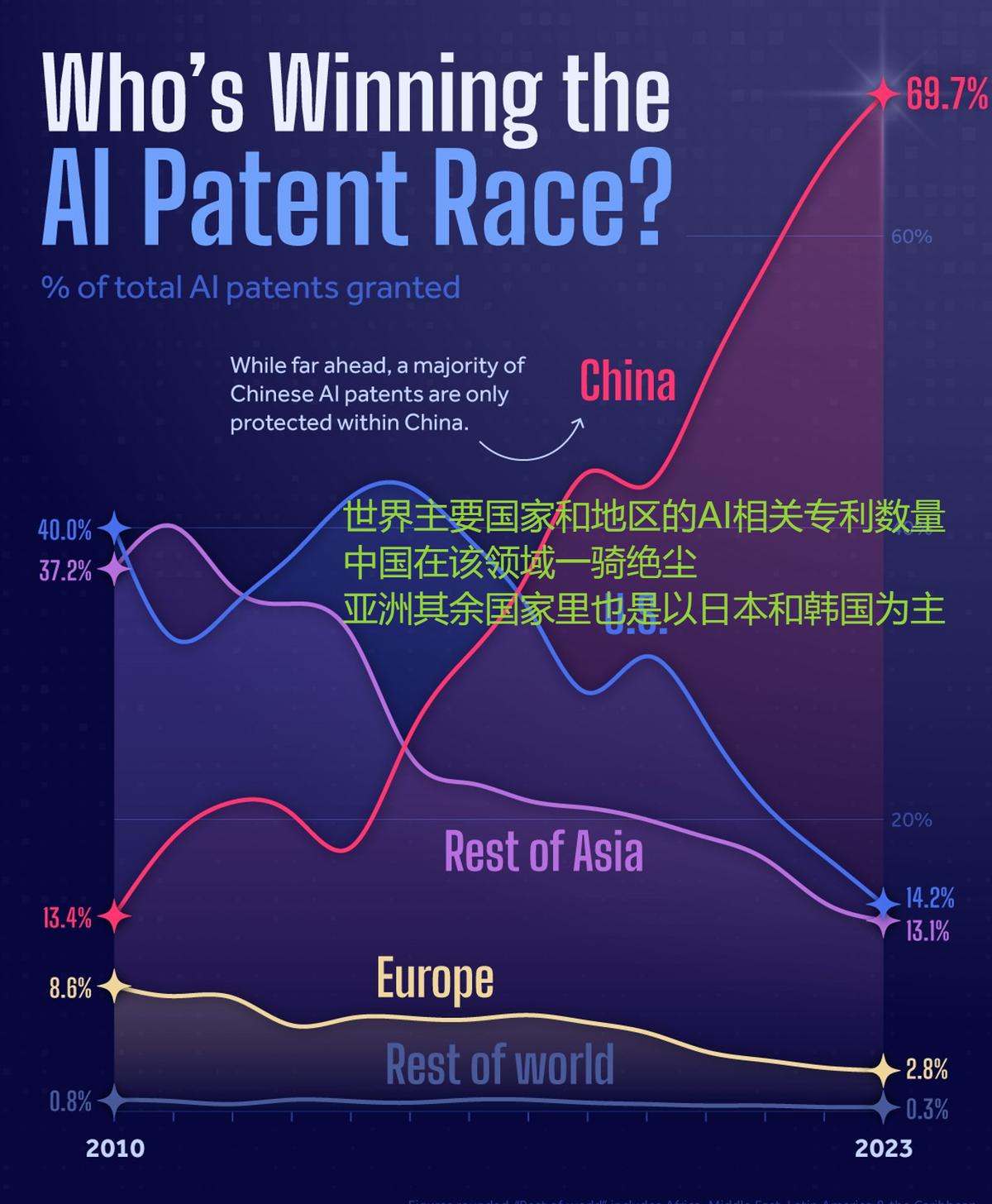 更让美国看不上眼的是,不论是在基础科研领域(以自然学术期刊的自然指数为代表),还是在AI相关专利申请的数量,全球范围内基本就是中美竞争,印度压根排不上号。就这样印度还想“上桌”?
