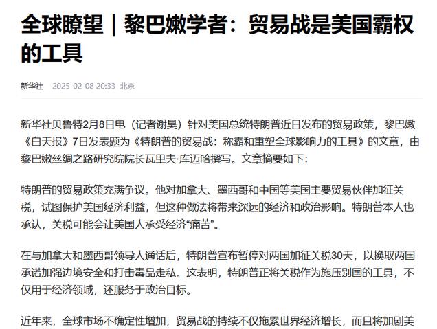 《和评理|美国关税战:一场豪赌,必将满盘皆输》光明网2025-02-11