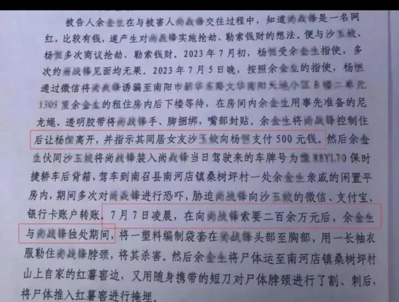 从未见过如此嚣张的杀人犯![发怒]杀害罗大美的主谋余金生不仅不承认故意杀人,还竟敢当庭对公诉人说“检察官你认定我构成犯罪,如果今天我被杀了,你也是杀人犯!” 2023年的时候,余金生从杨恒那里偶然得知了罗大美手里很有钱,便谋划着要抢劫他。 在罗大美还未成功骗来之前,他们就已经准备好了作案工具,并预谋了相关的作案地点。罗大美被绑后,拿出了能给出的一切,但最终仍被残忍杀害。 三名罪犯被捕后,交代了基本的犯罪事实。但到了第一次庭审时,竟然集体翻供了。如此有预谋的恶劣行径,三位罪犯竟然称罗大美的钱是自愿赠予他们的,他们也不是故意杀害他。 2025年7月29日,是反串网红罗大美被害案第二次开庭的日子。 参与杀害他的三名罪犯一如既往坚持了和第一次庭审时翻供的态度,面临公诉人的指控,主犯余金生不承认自己是故意杀人,不承认抢劫,只说自己是过失杀人。 他在威严的法庭之上,态度还十分恶劣,当庭对公诉人说出了如此嚣张的话语! 如此看来,这个余金生实在是太没有底线了! #头号创作者激励计划#