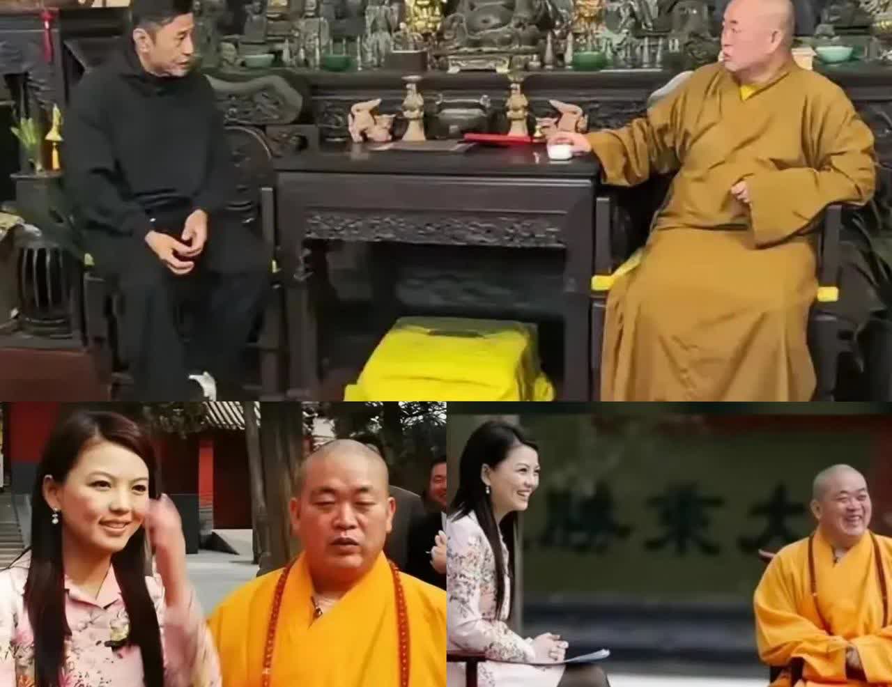 释永信出事, 原来这一切都是有迹可循的, 李湘和于荣光会面释永信,两人却有着完全不一样的待遇。 李湘08年到访少林寺,采访释永信照片,仔细看下图,两人有说有笑,气氛很轻松。当时李湘还是一名主持人,一头乌黑长发,穿着短裙配黑丝袜,翘着二郎腿,穿着高跟鞋。 李湘问释永信会不会武功,释永信脸红害羞起来,说自己武功早因为年龄退化很多。 尽管李湘提问有些尴尬,释永信还是轻松应对,两人脸上都满面笑容,相谈甚欢,释永信对李湘还是很给足面子的。 于荣光带家人到访少林寺,两人气氛略显严肃,释永信在说,于荣光在洗耳恭听,非常认真的态度。 只是细心网友发现,释永信给自己留了一杯茶,于荣光面前啥都没有,仔细看下图,于荣光面前没有开水,没有饮料,没有茶水,而且两人没聊多久,释永信端茶杯似准备送客,好像并没有把于荣光放在眼里。 按理说,他们跟释永信都有聊的话题,都能相谈甚欢。 只是不同的是,两个不同的人,却有着不同待遇。没有禅茶一味,也没有一视同仁。大家怎么看这件事?