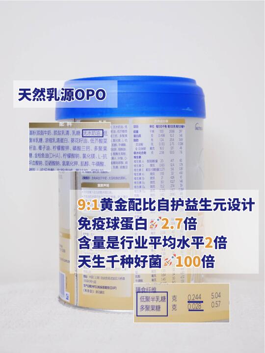 卓傲:9:1黄金配比自护益生元设计,含量接近9g/L成分表可查,行业平均水平2倍, 帮助千种有益菌快速↑100倍,还能↑2.7倍sIgA,主动发起全方位防御,打好自护力底子,快速满足宝宝成长所需