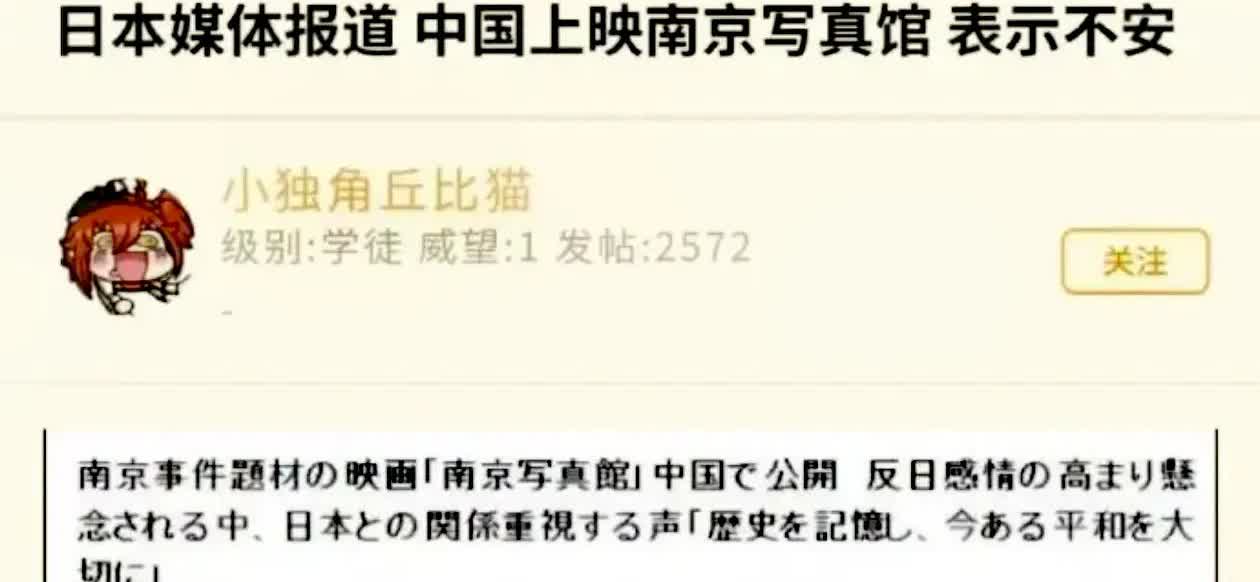 解气!驻日大使馆发了一条消息,让日本集体破防 据来自龙国驻日使馆的消息显示,其官方账号发布《南京照相馆》相关信息…… 我注意到,消息一经发布,就在外网冲上热搜…… 日本网民的评价不好听,就不发布了。 只告诉大家一个喜讯,他们破防了…… 值得注意的是,此前日媒曾对《南京照相馆》的上映表示不安。 现在看,我们在7月31日发文,意义重大。 您说对吧?