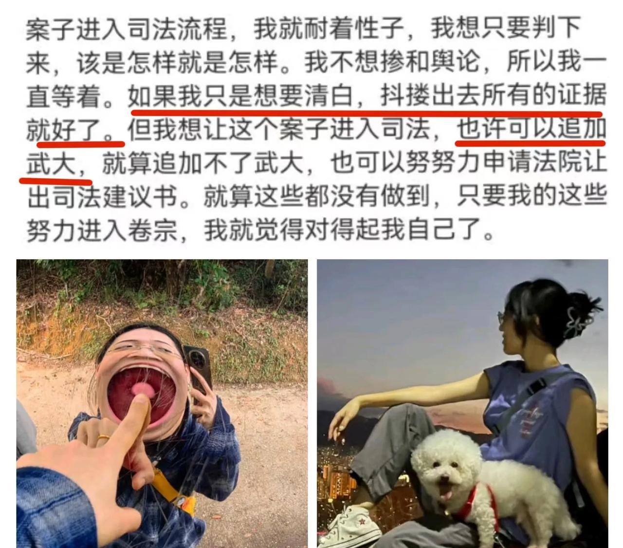 这把杨同学的黑眼圈更得深了!武大已经出通报了,要重新查!包括肖同学的处罚和杨同学的硕士论文,即将真相大白! 杨同学还曾想“追加武大”,以为自己考上博了,母校跳板作用已失,以为一切“尽在掌握”!她也是太低估别人的智商了。 现在不只是她的硕士论文禁不禁查的事儿,一旦查出问题,连她本科论文也难逃被翻出来的命运。 网友说了,本科论文如果有问题,会继续往上报,而且还有她的法考成绩,能否保住也是未知数。 所以,杨同学为何一再自己挖“坑”! 本来就是一场误会,“得饶人处且饶人”,这么浅显易懂的道理,上了那么多年学的人竟然不懂,也真是很奇怪啊! #头号创作者激励计划#