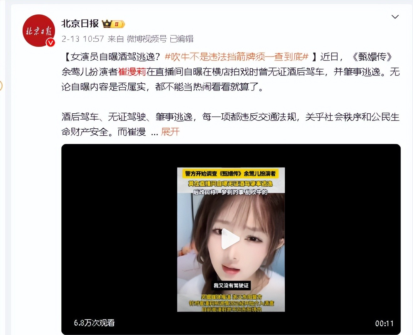在一次直播时,她如同打开了“话匣子”,毫无顾忌地自曝在浙江东阳市横店镇拍戏时,曾酒后无证驾驶并肇事逃逸,以下是她自述的内容。