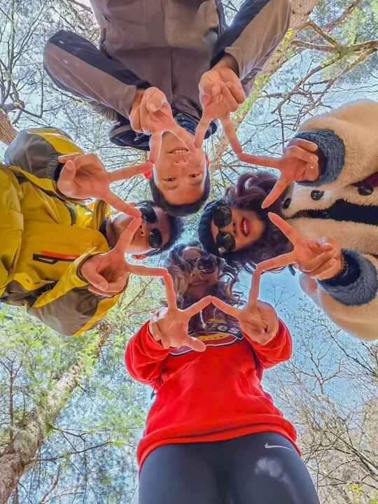 因为我们一路上说说笑笑,遇到好看的点就去各种搞怪姿势的拍照,第一天的徒步也不怎么觉得累